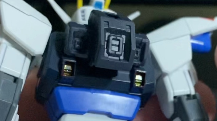 実際は下の飛び出たスラスター部分が干渉して、取り付けれるパーツはかなり限定されたものになっています。(写真のパーツはHGBD:Rアースリィガンダムのバックパックのパーツ)