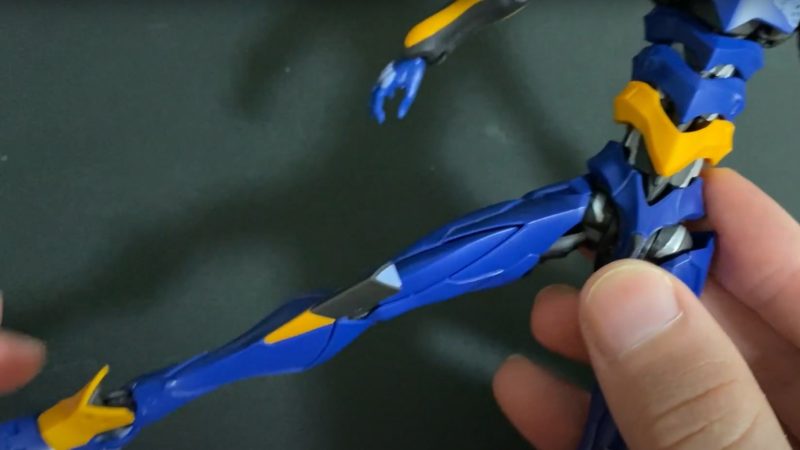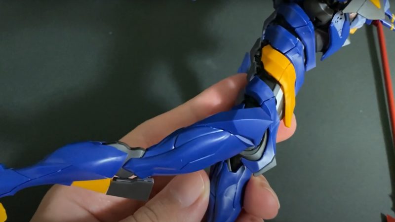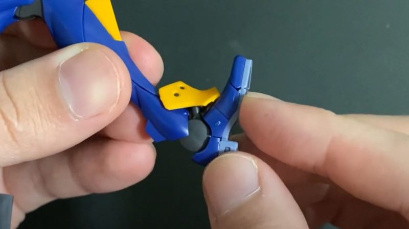 横側の肩アーマーを上に動かすと、腕は横に水平に動かせことができますが、