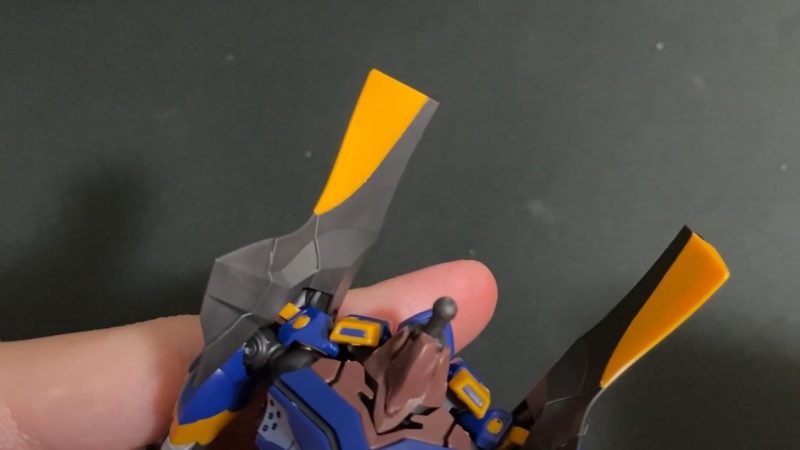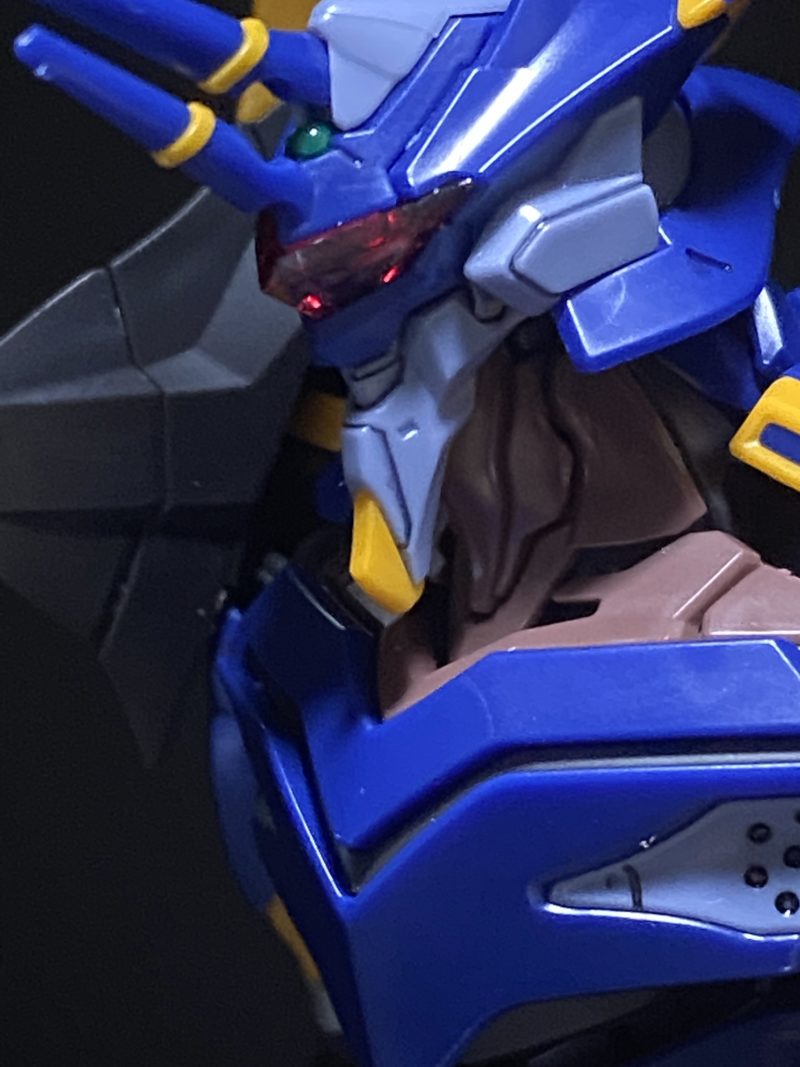 頭部の赤いバイザーパーツの内側には、白いツインアイのパーツがのぞいている形となっています。